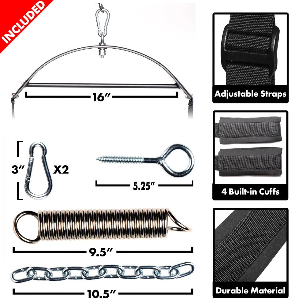 The swing has padded supports for your back, butt/thighs, and feet/calves. The swing also has a torque bar for added support for your wild love making sessions.